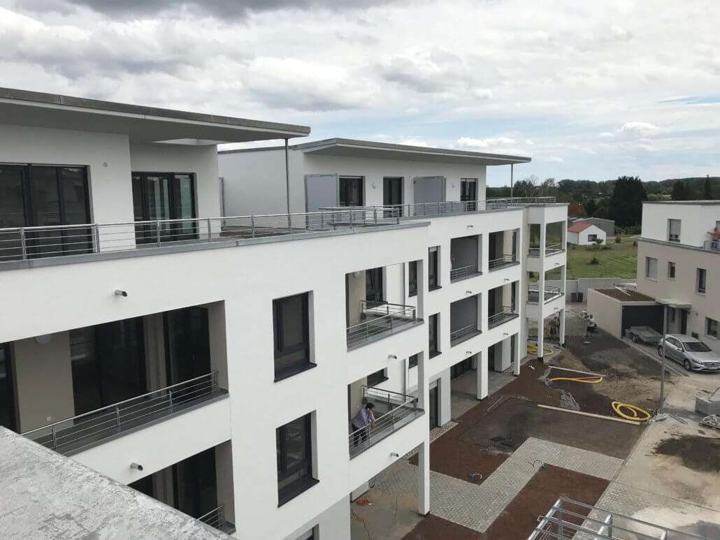 Am südlichen Stadtrand von Speyer sind die Wohnhäuser errichtet. Es entsteht ein Mix aus Doppelhäusern und Mehrfamilienwohnhäusern. Mehrere dieser Gebäude gruppieren sich um grüne Innenbereiche.
